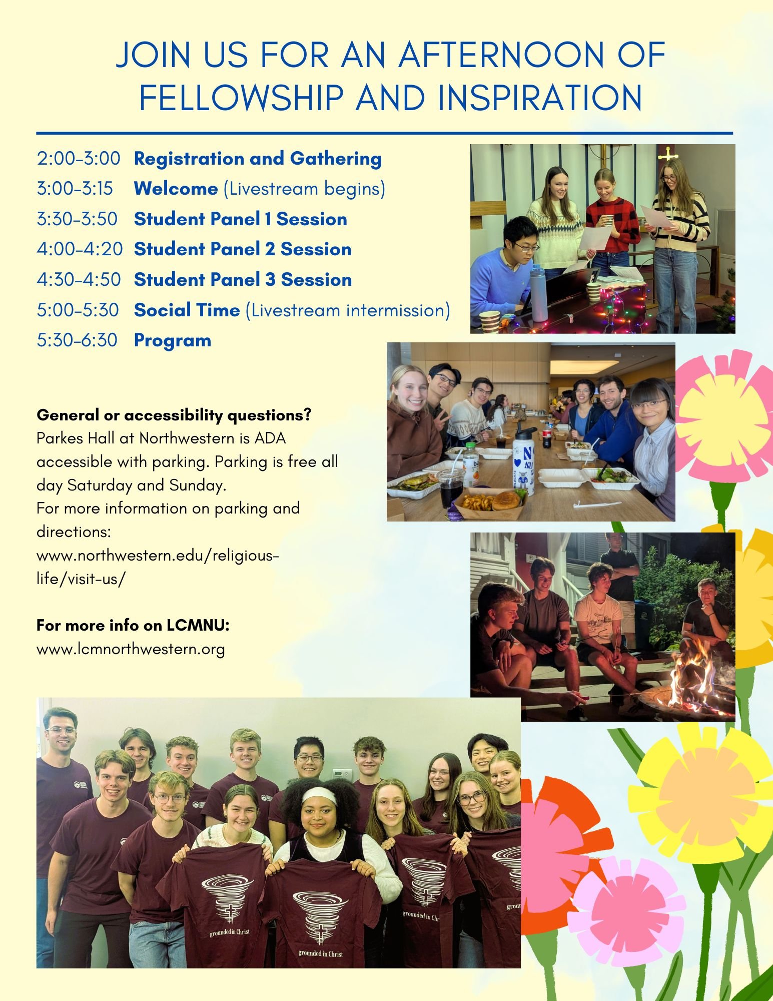 Email lutherancm@u.northwestern.edu to learn more about LCMNU events.
